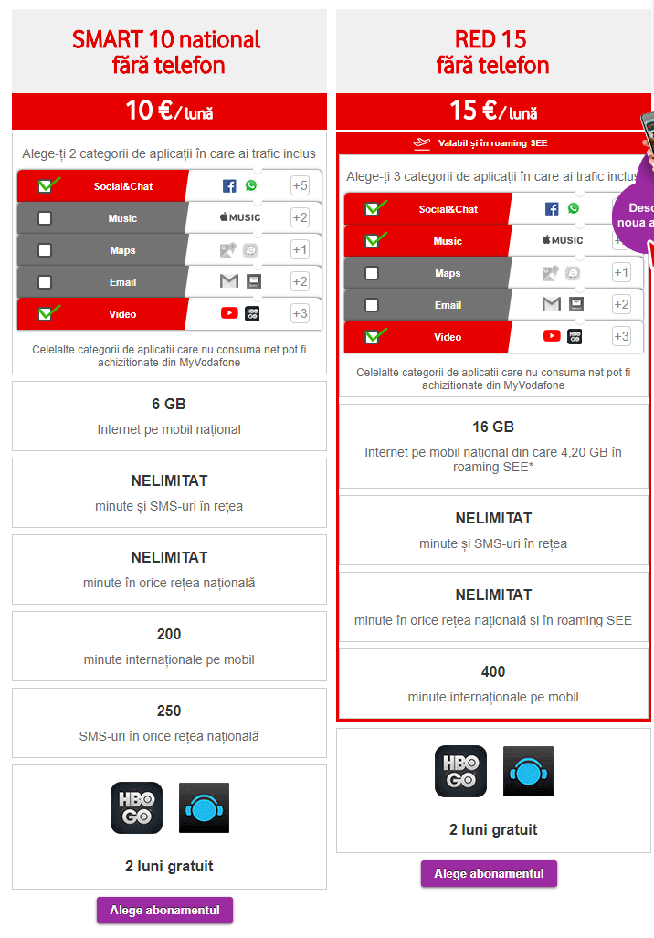 Abonament Vodafone Smart 10 National Fara Telefon Perioada