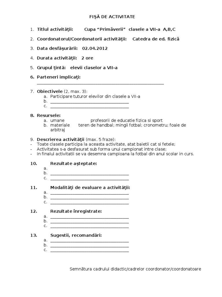 Fisa De Activitate Scoala Altfel