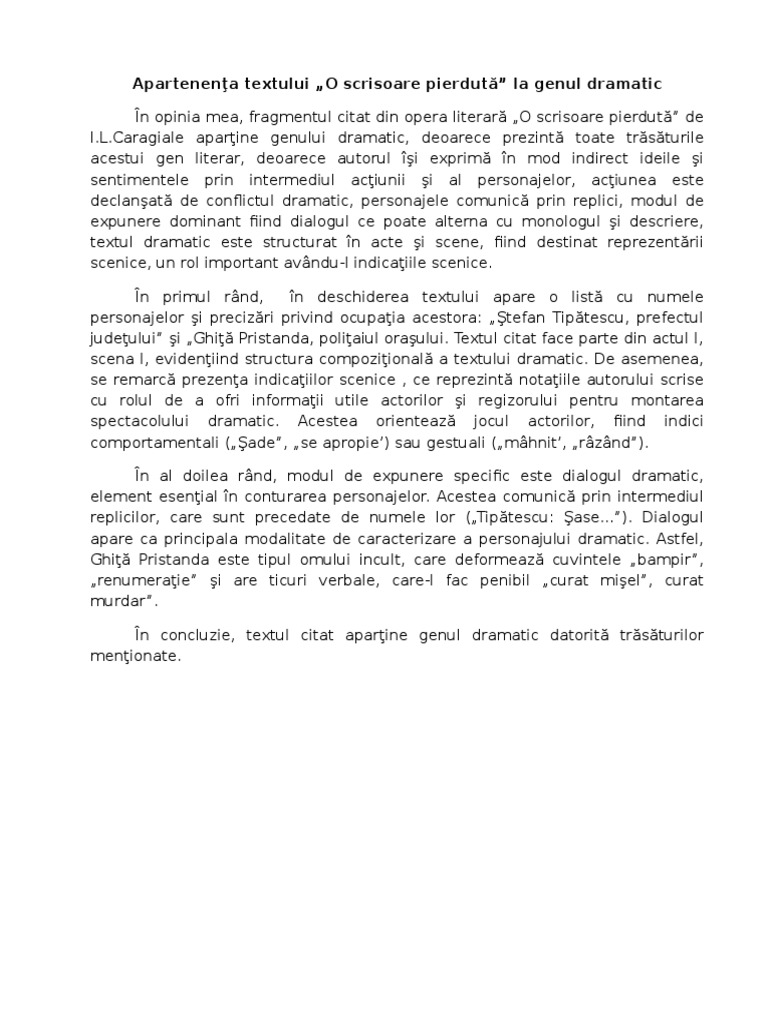 Apartenenta La Genul Dramatic O Scrisoare Pierduta