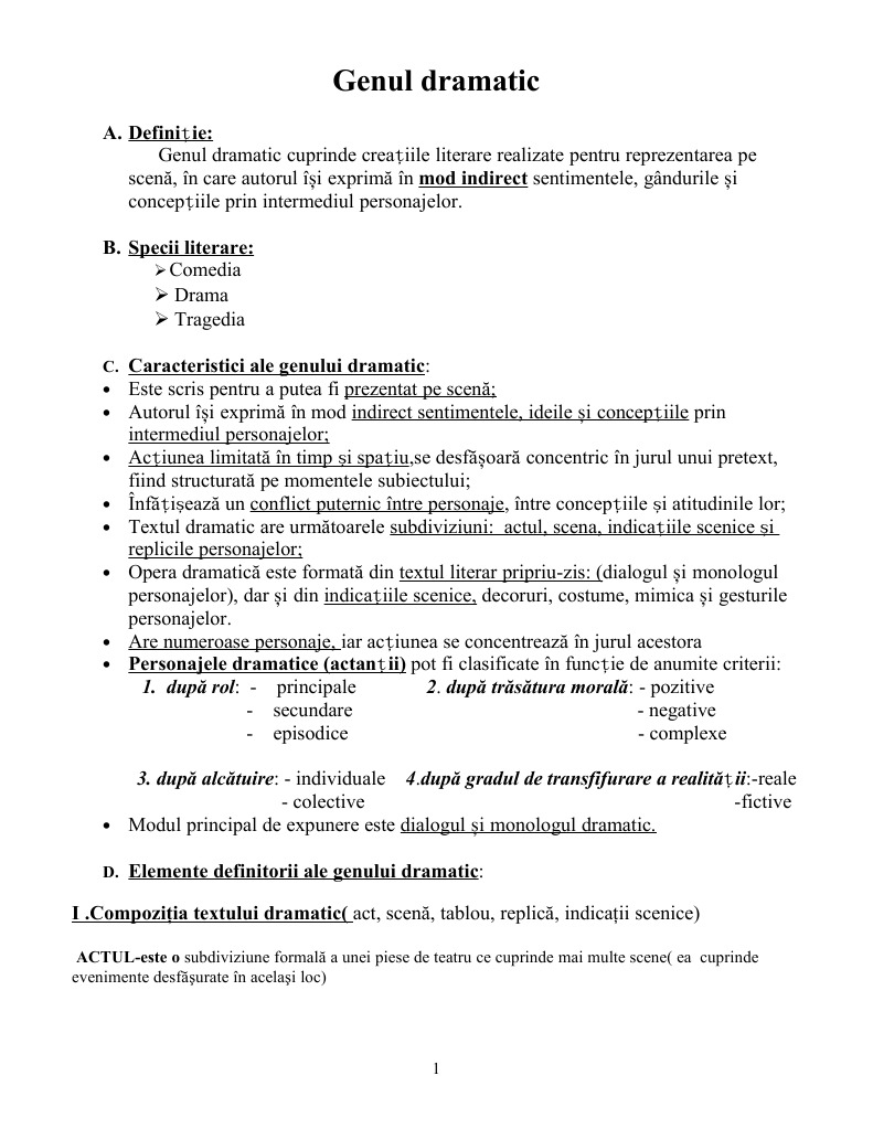 Genul Dramatic Trasaturi Generale Lectie Online Lb Romana