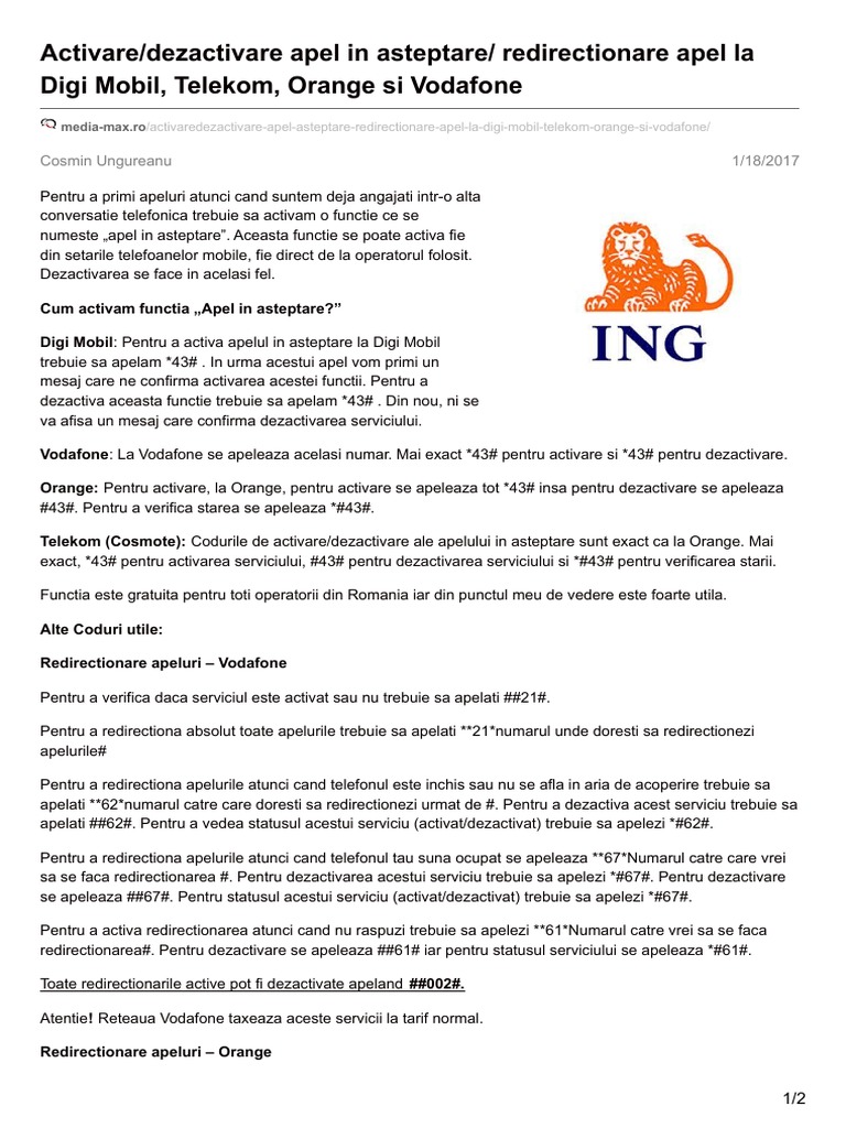 Activare Dezactivare Apel In Asteptare Redirectionare Apel La