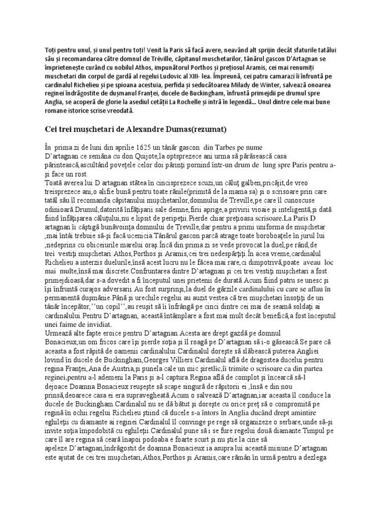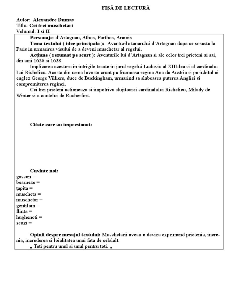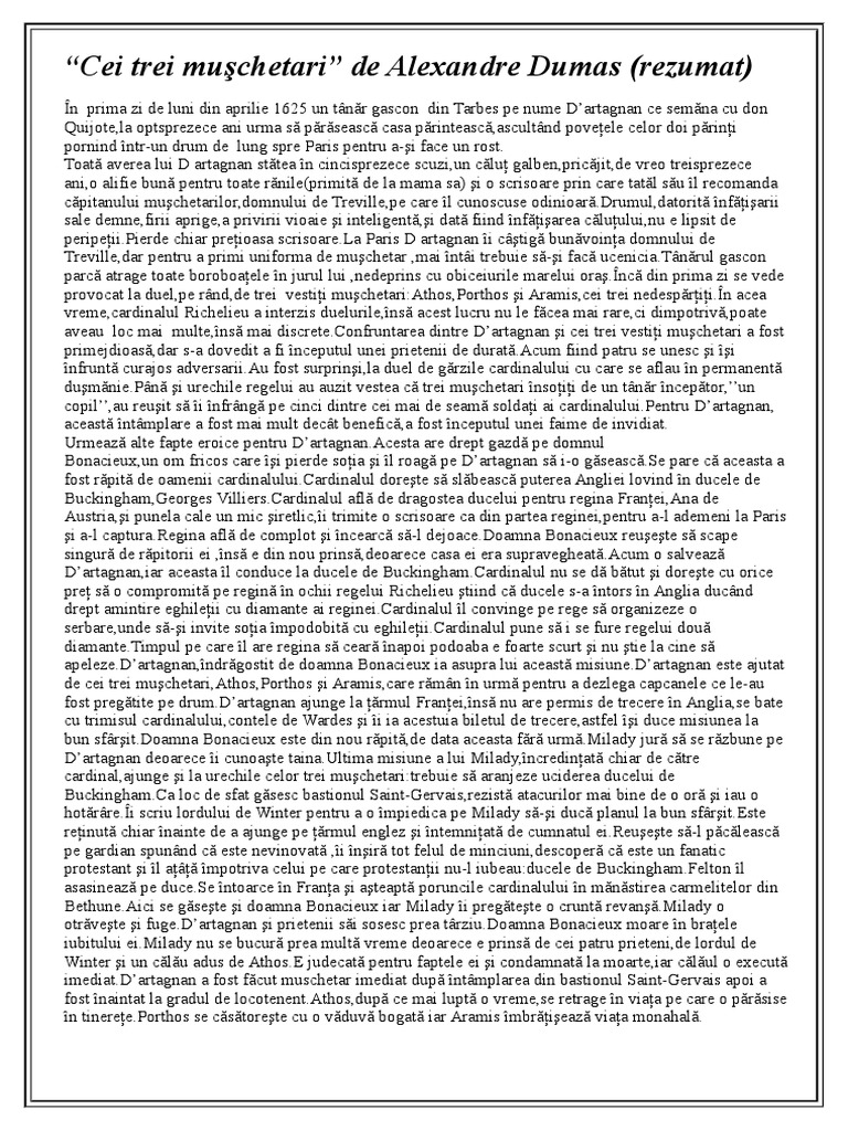 Fișă De Lectură Cei Trei Muschetari Rezumate Cărți Citeste
