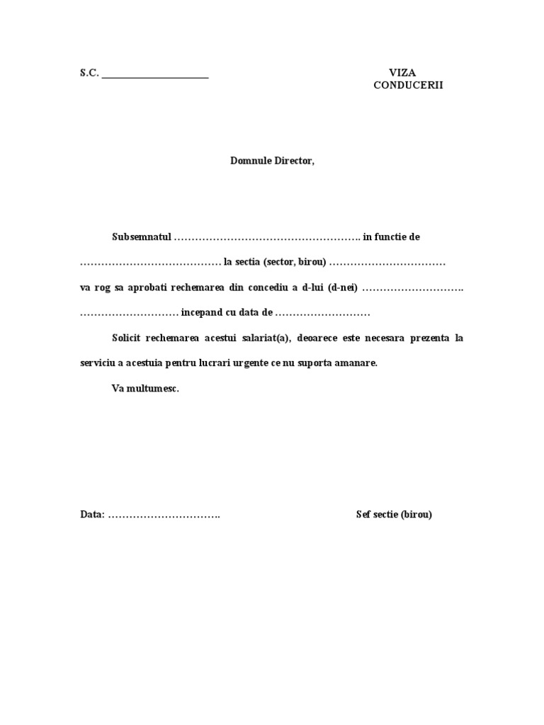 Cerere De Rechemare Din Concediu