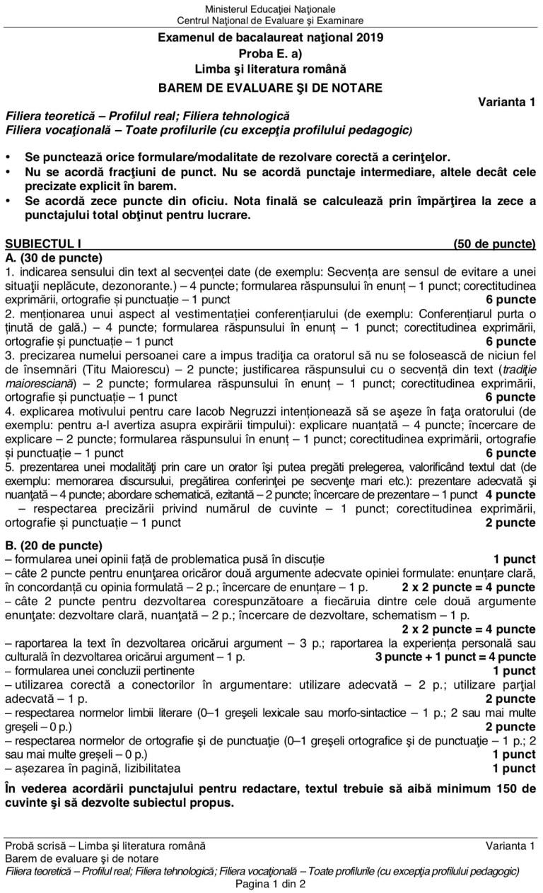 Bacalaureat 2019 Barem și Subiecte La Romană Publicate De