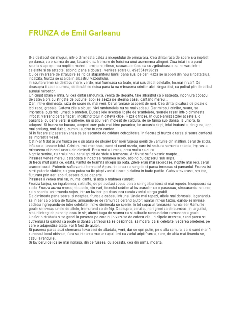 Povestire Frunza De Emil Garleanu Repedee Dau Coroana Si Multe
