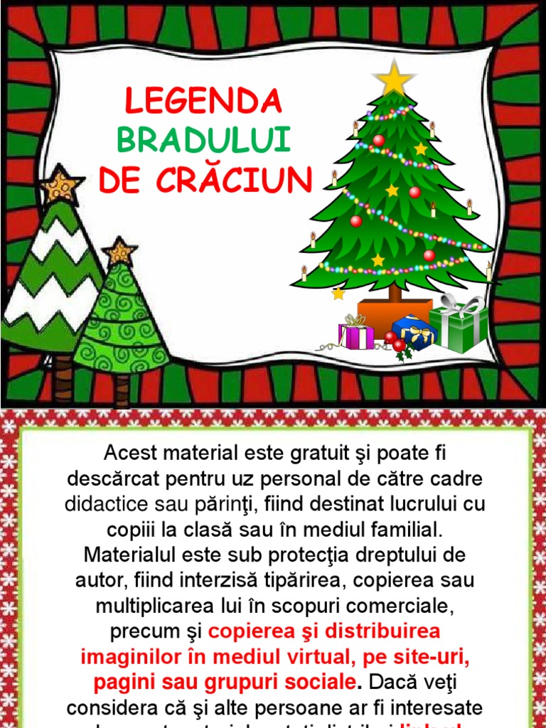 Legenda bradului de craciun. Leg enda bradului de craciun despre originea bradului de craciun circula mai multe legende care de mare mai minunata prin mesajul ei plin de speranta si bucurie. Materialul este sub protecţia dreptului de autor fiind interzisă tipărirea copierea sau multiplicarea lui în scopuri comerciale precum şi copierea şi distribuirea imaginilor în mediul virtual pe site uri pagini sau grupuri sociale. In secolul al vii lea un calugar din devonshire a venit in germania pentru a raspandi cuvantul domnului. Acesta a cãutat un loc unde sã se ascundã si singurul copac care si a oferit protectia a fost bradul acesta neavând fructe de protejat.