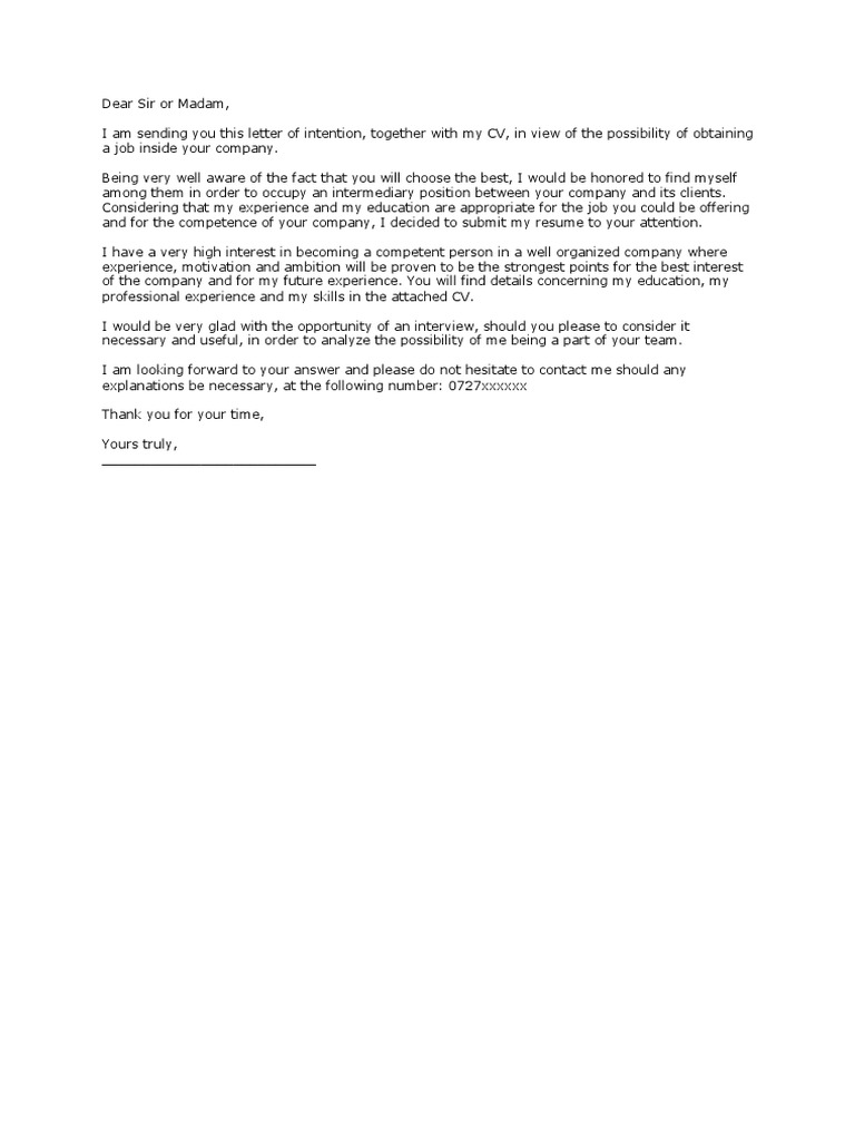 Scrisoare De Intenie Cv