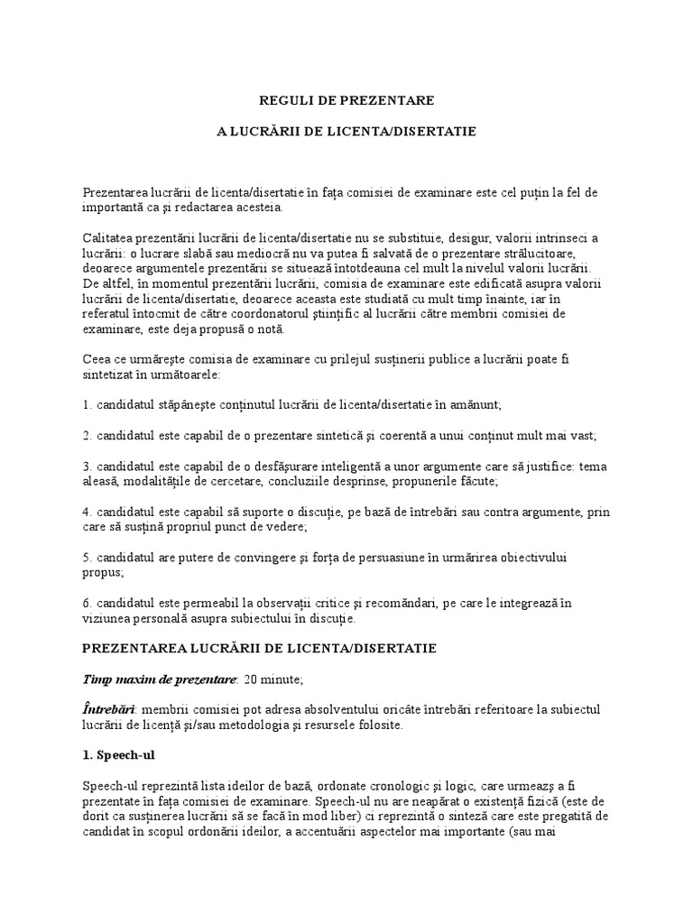 Reguli De Prezentare Lucrarii De Licenta Docx
