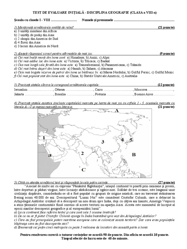 Geografie Subiecte Clasa 8